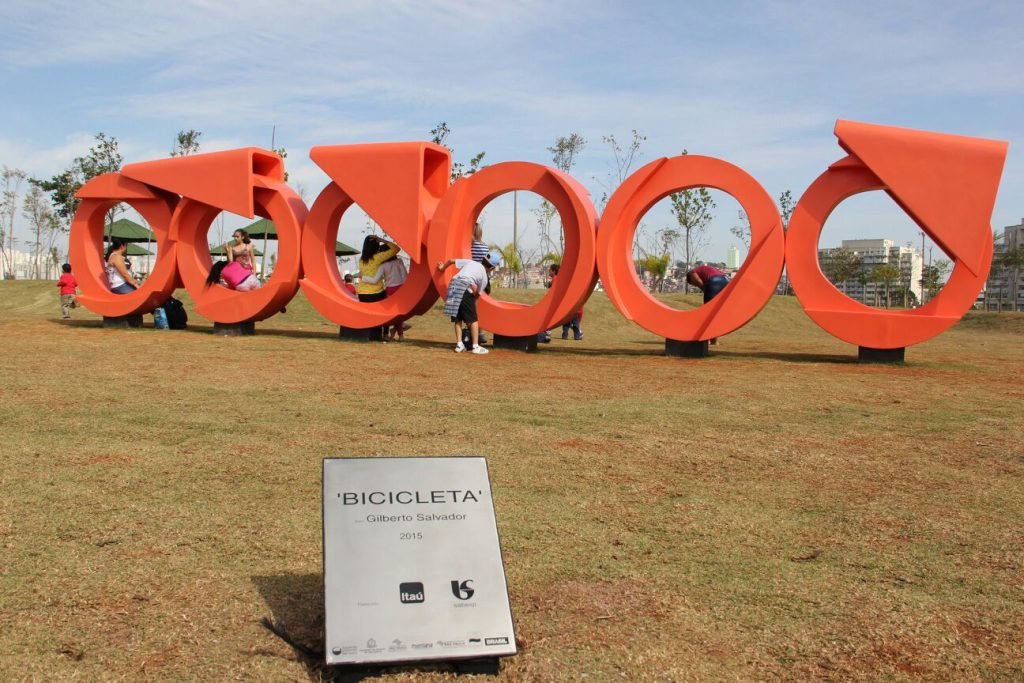 Salvador já era parceiro da Secretaria de Estado do Meio Ambiente, tendo uma outra obra sua instalada em 2014 no Parque da Juventude, na zona norte da capital. A escultura “Bicicleta” utiliza grandes formas geométricas – seis círculos e três triângulos – dispostas em sequência e de tal modo que remetem à imagem de três ciclistas correndo com suas “bikes”. A obra está instalada ao lado da ciclovia do Parque Candido Portinari.