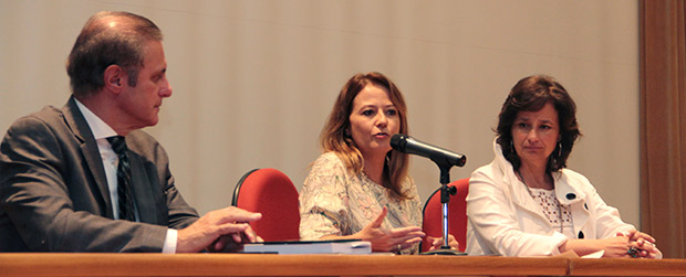 O vice-presidente da Cetesb, Nelson Bugalho, a secretária de Estado do Meio Ambiente Patrícia Iglecias e a presidente da Abre, Gisela Schulzinger