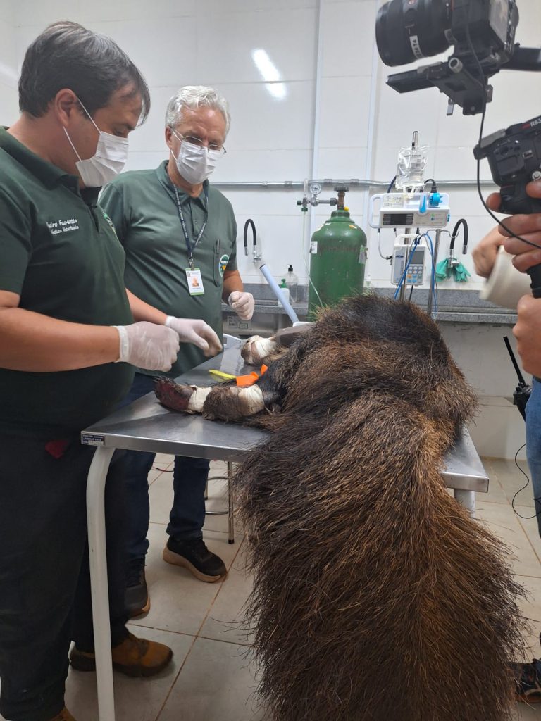 O caso mais grave na unidade é o da tamanduá-bandeira, espécie em extinção no Brasil. O animal, uma fêmea adulta, que ganhou o nome Vitória, teve nas patas e no focinho queimaduras de terceiro grau. Mesmo machucada, lutou tanto para escapar das chamas que acabou sofrendo um estresse severo, descompensando praticamente todas as funções vitais. Vitória está sendo monitorada durante 24 horas por dia, assim como todos os outros que chegam em estado crítico.