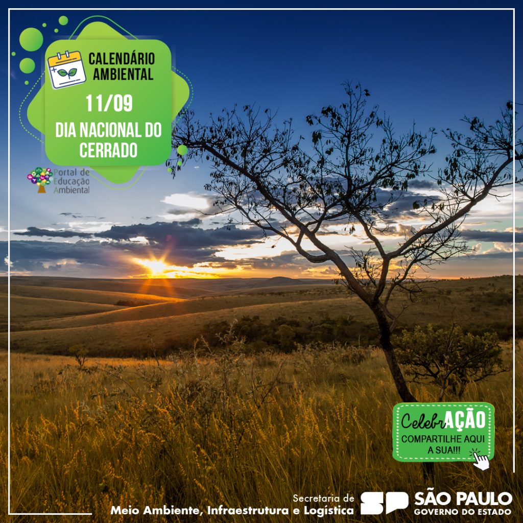 O Dia Nacional do Cerrado é celebrado em 11 de setembro. O segundo maior bioma da América do Sul ocupa, aproximadamente, 22% do território brasileiro, com áreas em 11 estados e no Distrito Federal, e ainda com alguns reflexos no Amapá, Roraima e Amazonas. No estado de São Paulo, o Cerrado já ocupou 14% do território, mas, atualmente, resta menos de 1% de sua vegetação natural, espalhada por 16 municípios.