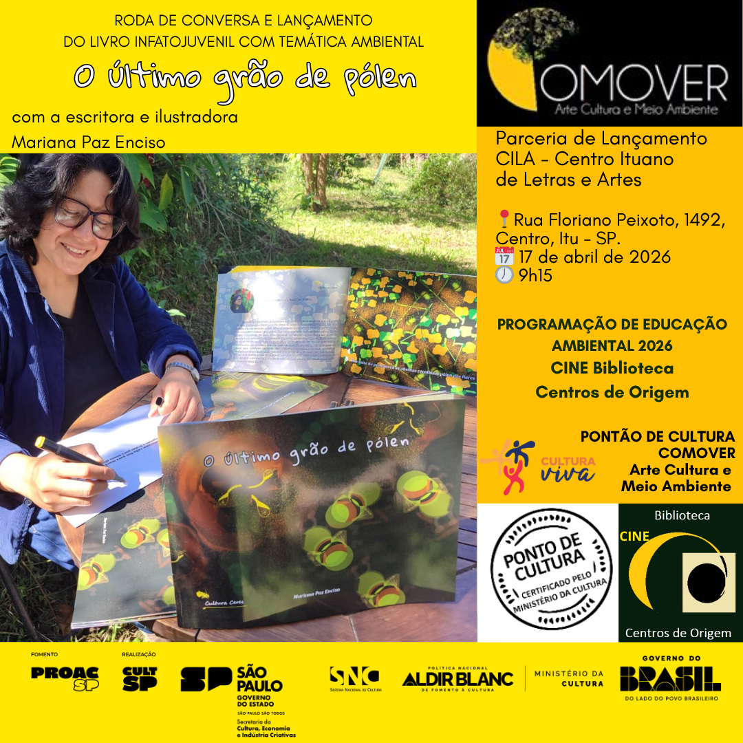 Roda de Conversa e Lançamento do livro infatojuvenil com Temática Ambiental "O ÚLTIMO GRÃO DE PÓLEN" da escritora e ilustradora Mariana Paz Enciso. @marianapazenciso Apresentação do Livro Constituído por […] |