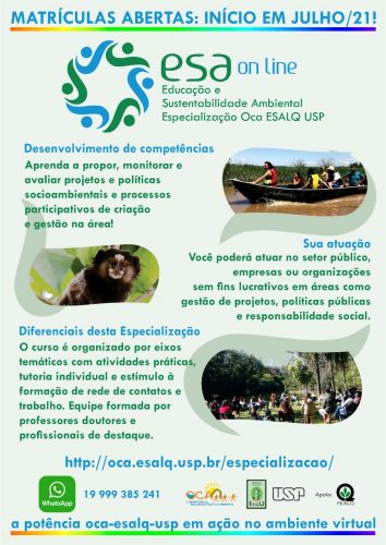Contato: cursos.oca@usp.br Informações sobre Investimento e Matrícula: http://oca.esalq.usp.br/especializacao/ |