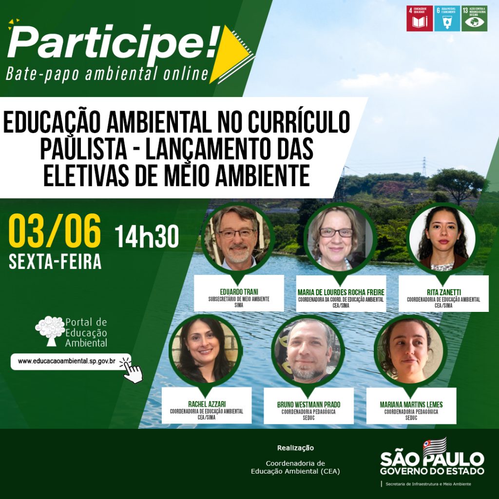 Participe! Acesse: https://semil.sp.gov.br/educacaoambiental/videos/participe-educacao-ambiental-no-curriculo-paulista-lancamento-das-eletivas-de-meio-ambiente/