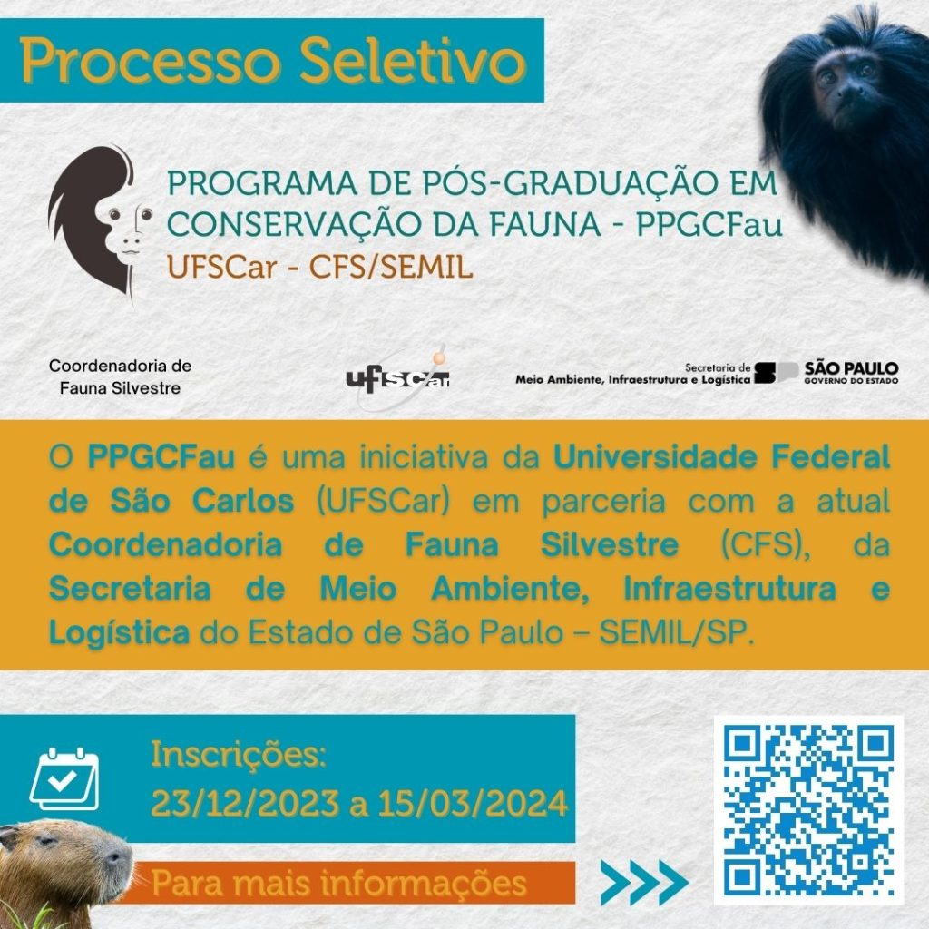 ? O Programa de Pós-Graduação em Conservação da Fauna (PPGCFau) é uma iniciativa da Universidade Federal de São Carlos (UFSCar) em Acordo de Parceria com a atual Coordenadoria de Fauna Silvestre (CFS), da Secretaria de Meio Ambiente, Infraestrutura e Logística do Estado de São Paulo – SEMIL/SP.