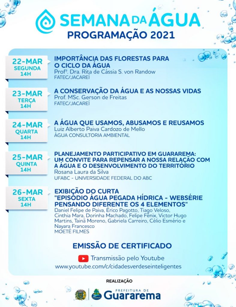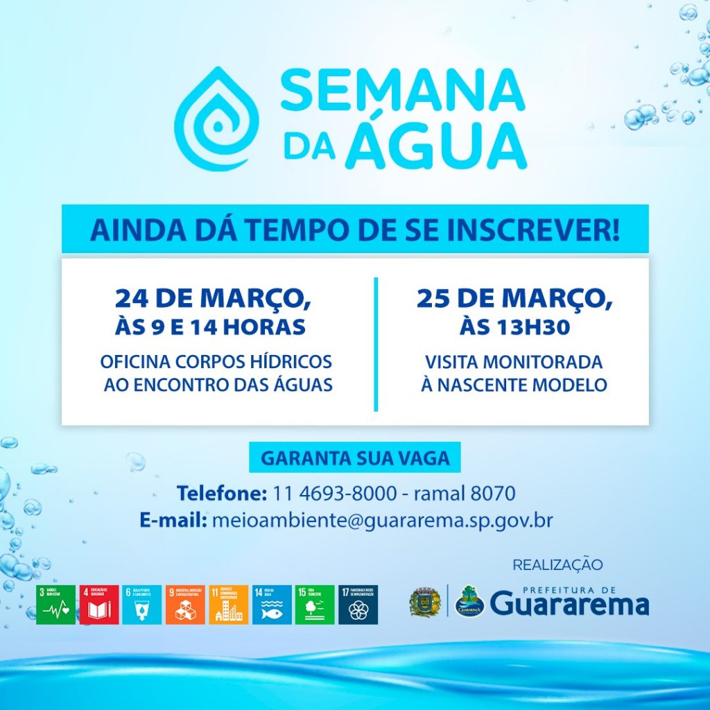 Veja mais: https://semil.sp.gov.br/educacaoambiental/evento/semana-da-agua-de-guararema/