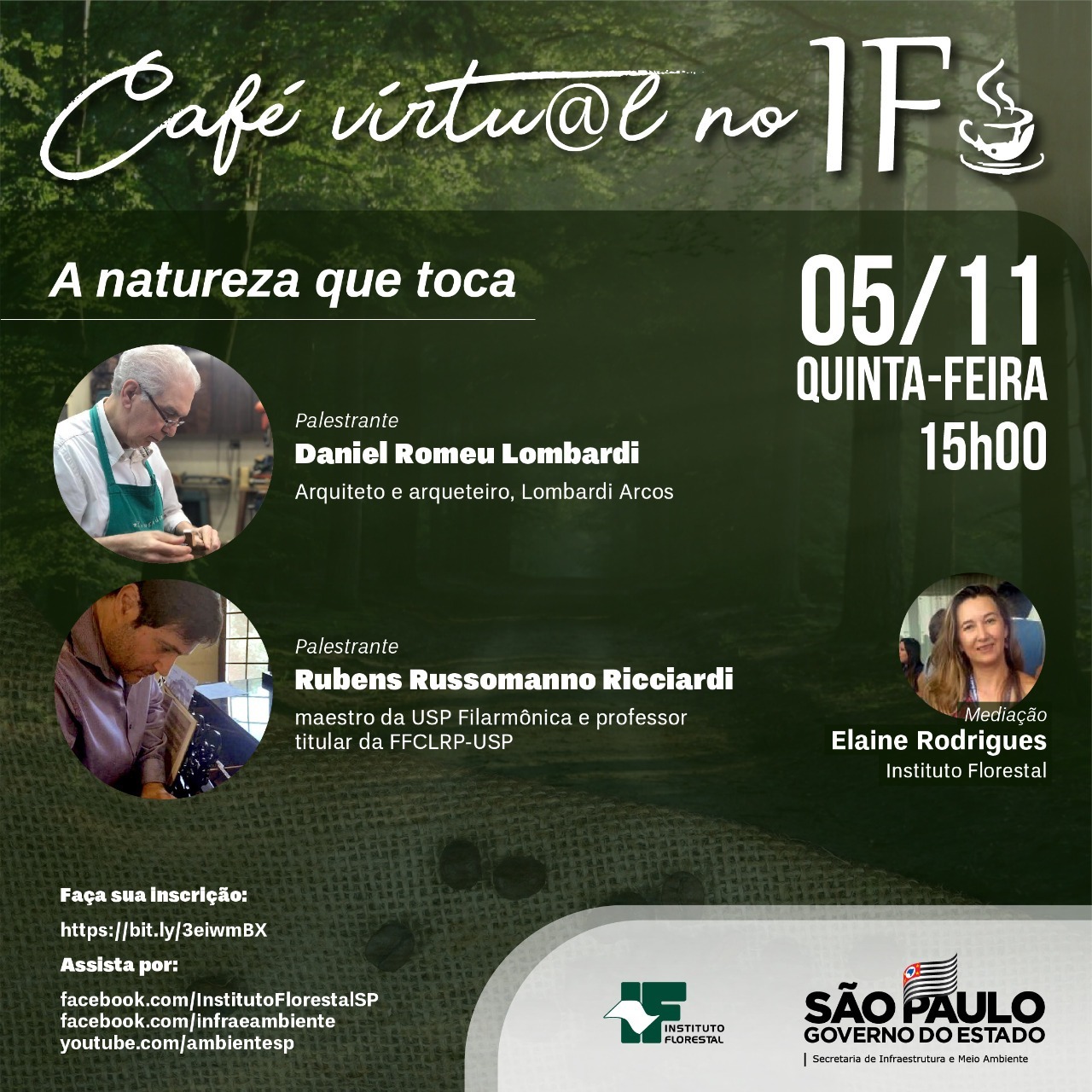Que tal uma pausa na rotina? Em A natureza que toca, o Café Virtual desta quinta-feira (03) explora a profunda relação da natureza na música e na poesia. E vai mais além! A natureza que inspira fornece a madeira usada nos instrumentos musicais que encantam nossa vida! O maestro Rubens Russomanno Ricciardi e o arqueteiro […]