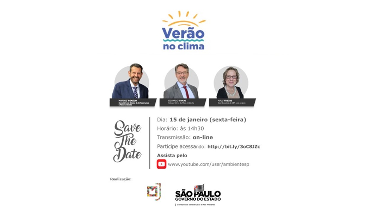 A Secretaria de Infraestrutura e Meio Ambiente (SIMA), por meio da Coordenadoria de Educação Ambiental (CEA), convida para o lançamento do projeto Verão no Clima, edição 2021. O evento acontecerá em formato online. Este ano, o Verão no Clima será realizado em 16 municípios do litoral paulista. A ação tem o objetivo de contribuir para […]