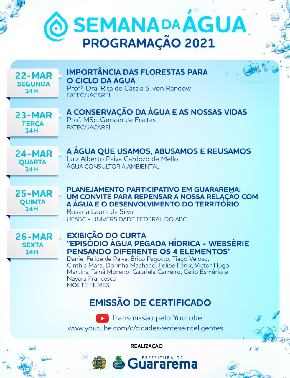 A Coordenadoria de Recursos Hídricos de São Paulo (CRHi), juntamente com a Secretaria de Infraestrutura e Meio Ambiente (SIMA) realizarão na próxima semana, do dia 22 a 26/03 a semana de Lives “Conversando sobre Água” em homenagem ao Dia Mundial da Água, comemorado no dia 22 de março. O evento acontecerá canal do Youtube da […]