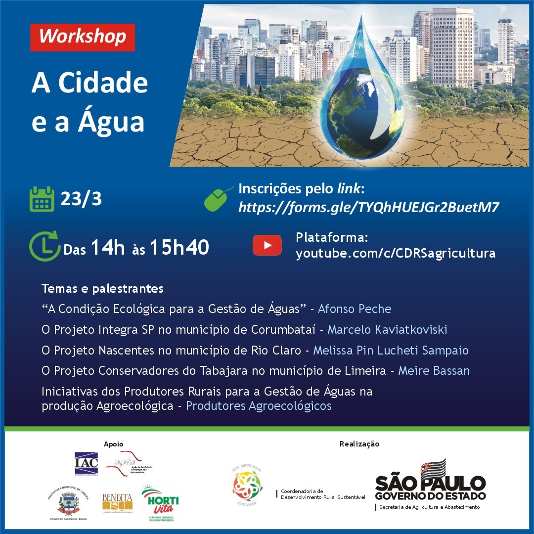 WORSHOP: "A Cidade e a Água" - produtores rurais, técnicos extensionistas e pesquisadores mobilizados e unidos em benefício da conservação da água Clique aqui e faça sua inscrição