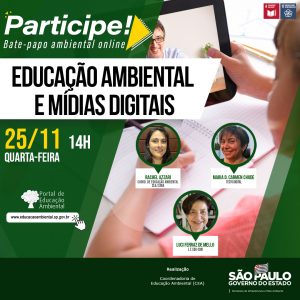 O foco desta edição do Participe é exatamente sobre esse tema tão relevante: Educação Ambiental e Mídias Digitais! Nele são apresentados conceitos ligados às interfaces da Educação e Comunicação (também conhecida por Educomunicação), e ao uso de Mídias Digitais, com destaque para o desenvolvimento de competências específicas, como protagonismo e comunicação dialógica, tão relevantes para se promover a reflexão sobre os inúmeros aspectos ligados ao meio ambiente.