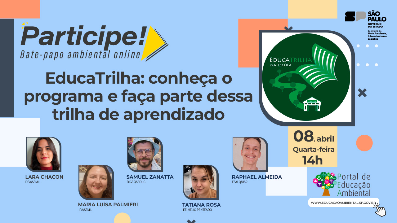 Envie seus comentários e dúvidas aqui pelo Portal de Educação Ambiental — vamos responder ao vivo durante a transmissão! Participe!
